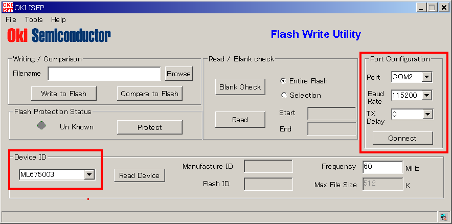 The ISFP programs the internal flash of Oki's MCUs by interfacing with the built-in Boot-ROM of the MCU through its UART serial port.
